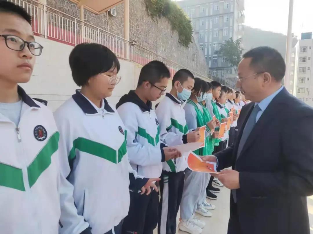 学生代表马祥龙在发言中例举了《感动中国》2020年度人物张桂梅的事迹,向全体同学们发出倡议,“做烂漫的山花,不惧碾作尘,无意苦争春,以怒放的生命,向世界表达倔强”。他代表全体同学宣誓,怀惴美好梦想,拿出顽强毅力,掌握正确方法,勤学善问,和谐友爱,大步向前,不负韶华!
