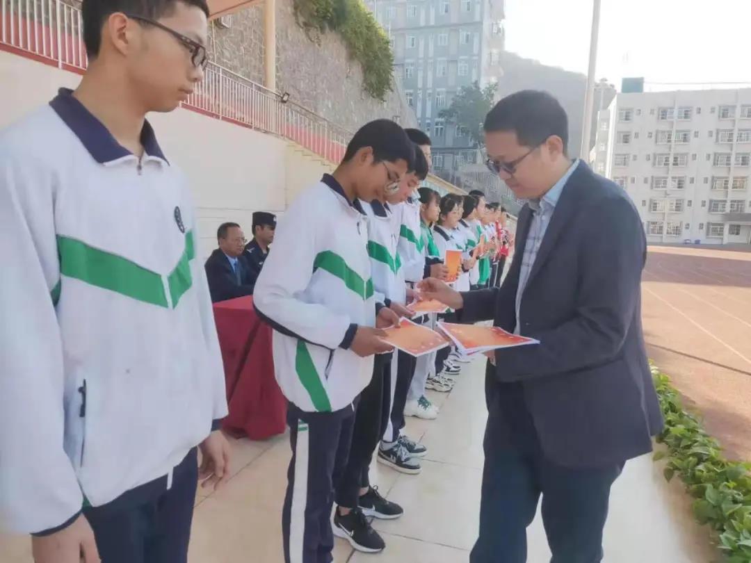 学校党委副书记汪建明同志宣读了市七中花城校区《关于表扬2020-2021学年第一学期优秀学生、三好学生、优秀学生干部与先进班的决定》,学校领导班子成员为获奖学生和集体颁奖。