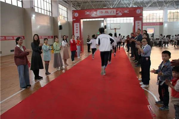 简单而有趣的游戏激励学生奋力拼搏!游戏结束以后,在班主任的带领下,初三学子踏着整齐的步伐,精神抖擞的走过得胜门,踏进主会场。