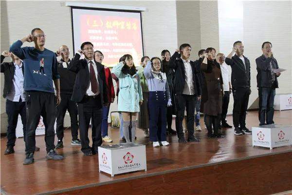 在初中部主任徐子耀的带领下,全体教师进行宣誓。为了学生的锦绣前程,为了家长的殷切期望,为了社会的深切嘱托,在距离中考百天这个庄严的时刻,我们全体教师郑重宣誓: