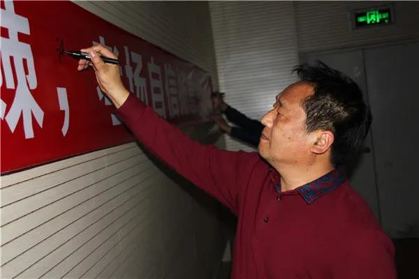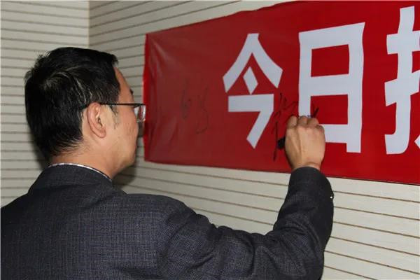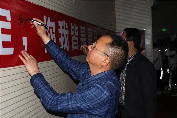活动最后,学校领导、教师纷纷在各班的战旗上签下名字,祝愿他们金榜题名、实现梦想。在班主任的带领下,初三学子们在属于自己的战旗上签下了自己的铮铮誓言。相信在未来的一百天里,他们一定会树立自信、明确目标、把握时间、潜心备战,笑傲六月,金榜题名!