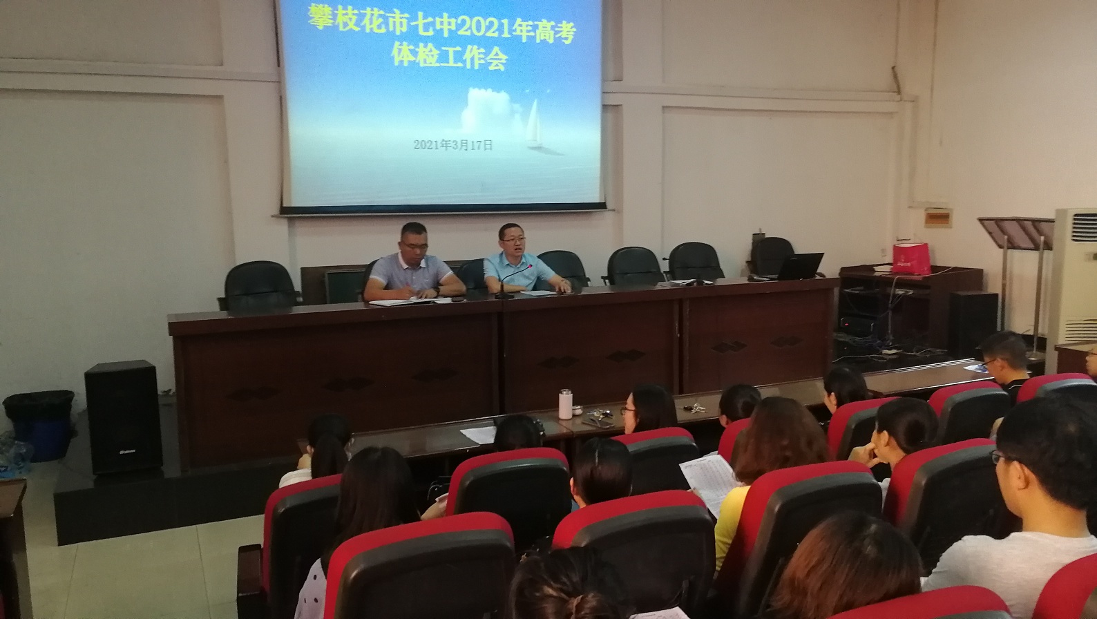 3月17日,我校在西城校区高三园学术报告厅召开2021年高考体检工作会议,教学部管理人员、班主任、考生体检带队教师参加,学校副校长代座城出席。会议由教务科科长何文刚同志主持。