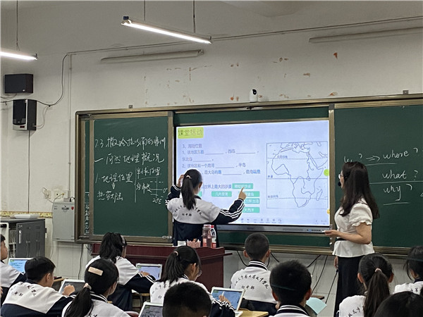 交流活动在东陆高级中学赵庆梅老师的地理公开课《撒哈拉以南的非洲》中拉开序幕。(赵庆梅:中学地理一级教师,希沃易课堂全国优秀案例征集一等奖获得者。)课上,赵老师熟练的将电子设备的使用和地理知识结合起来,在课前测试中,实时统计预习数据,实现了以学定教;课中,通过互动答题让每个同学都参与到课堂互动中,答题结果得到实时反馈;课后,因材施教,一键推送分层巩固练习给学生,为全部初中部教师带来了一堂生动而精彩的地理课。学生在赵老师的引导下,认真思考、主动参与、兴趣浓厚,展示了我校学生积极的学习状态和良好的精神风貌。