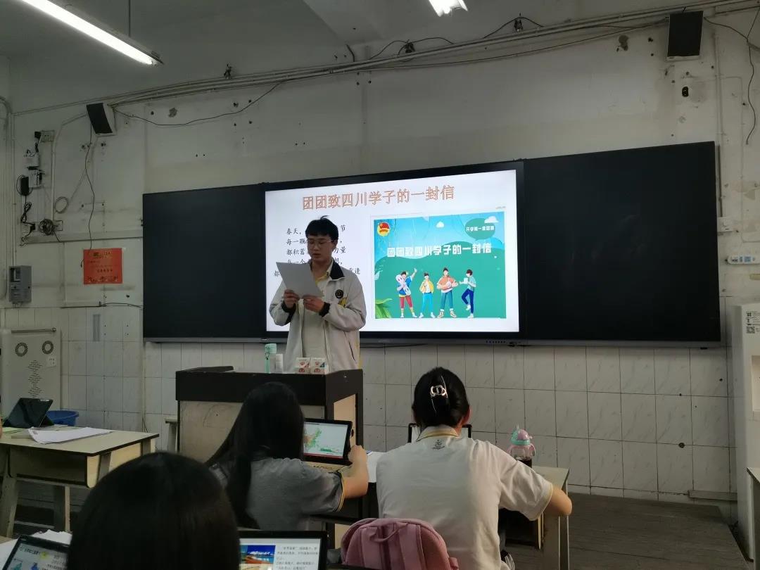 活动中,各班团支书组织团员青年阅读了《团团致四川学子的一封信》。信中,团团回顾了极不平凡的2020年,并对新时代青年学子提出了具体要求。2020年,在党的正确领导下,中国在疫情防控和脱贫攻坚战取得了巨大成绩,新时代的青年学子要展现新作为,努力为推动治蜀兴川再上新台阶、奋力夺取全面建设社会主义现代化四川新胜利贡献青春力量。