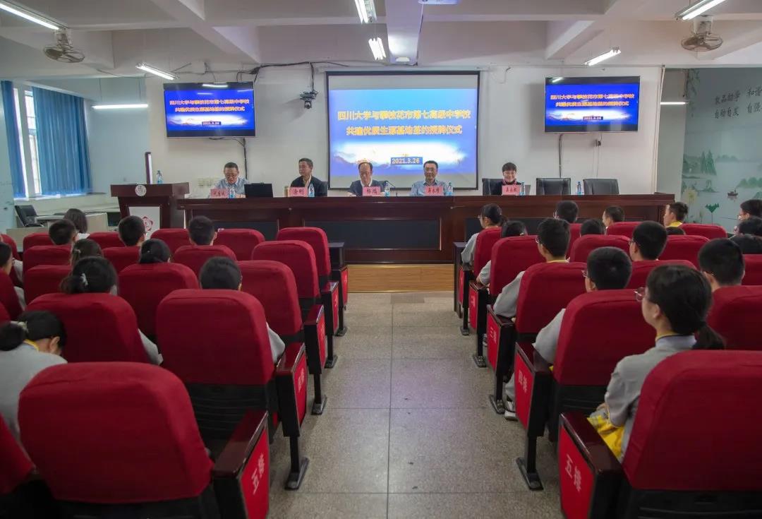 三月大地,春意盎然。2021年3月26日上午,四川大学经济学院院长、教授蒋永穆,经济学院副书记、副教授涂刚,经济学院教授吴永红,建筑与环境学院主任张堙,外国语学院讲师余淼,经济学院辅导员张译文,招生联络员张旭玲兰一行7人莅临我校西城校区,向我校颁发了四川大学“优秀生源基地”牌匾,并开展了校情介绍、生涯规划等讲座。