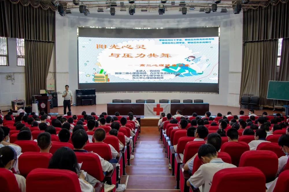 我校作为攀枝花市集中开展学校青少年心理健康教育活动的第一所高中,特邀请到攀枝花市第三高级中学校的心理教师蒋旭玲,于2021年3月31日和4月1日晚,在西城校区圆形会议厅为我校高三学生开展两场考前心理减压讲座。讲座由德育科孔智彬老师主持。