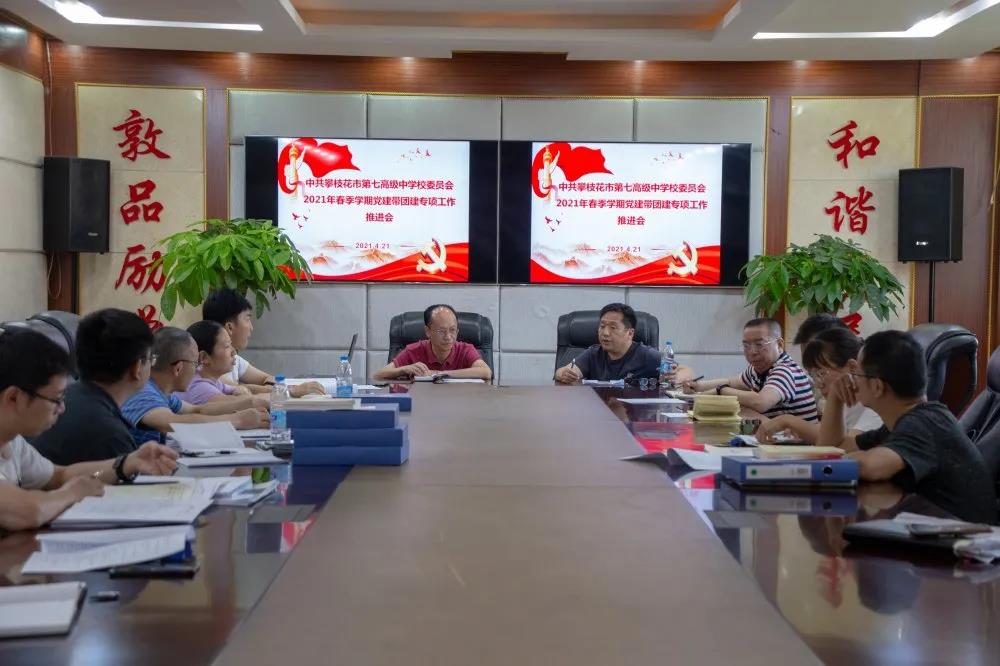 为促进学校共青团工作的进一步发展,落实党建带团建工作,4月21日下午,市七中党委在西城校区博通楼四楼多功能会议室举行了2021年春季学期党建带团建专项工作推进会。学校党委班子成员出席会议,学校党委副书记兼纪委书记阎东主持会议。