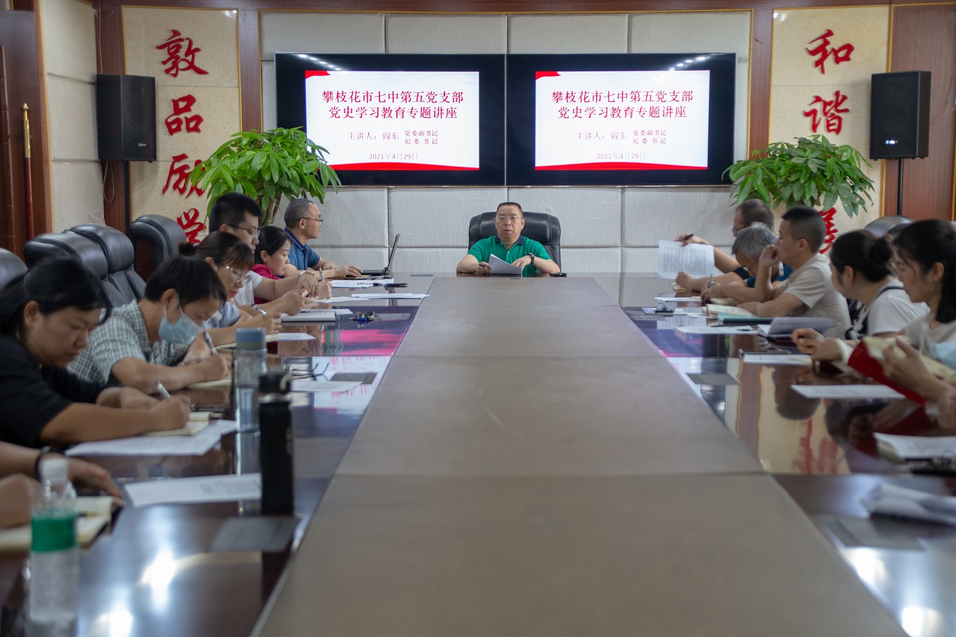 为深入学习贯彻习近平总书记在党史学习教育动员大会上的重要讲话精神和党中央、省委、市委关于党史学习教育决策部署要求,掀起党史学习教育热潮,2021年4月29日,攀枝花市七中第五党支部在西城校区博通楼四楼多功能会议室开展党史学习教育讲座。学校党委副书记、纪委书记阎东同志以《中国共产党的成立》为题做了宣讲。