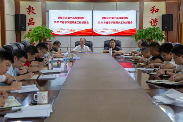学校党委书记、校长杨鸿组织参会人员学习了中共攀枝花市委办公室 攀枝花市人民政府办公室印发的《关于促进人力资源聚集的十六条政策措施》的通知以及四川省教育厅《关于印发〈校园安全重点工作任务清单〉的通知》,他强调,各科室、各教学部要团结协作、相互协调,在做好期末备考工作的同时,始终绷紧安全弦,认真贯彻落实上级相关文件精神;做好新学期教师人事安排工作;办公室要做好退休教师的荣退工作、新教师的入职培训工作以及期末放假相关工作;要认真做好中层干部换届的相关准备工作;宣读了调整市七中内设机构名称的文件。