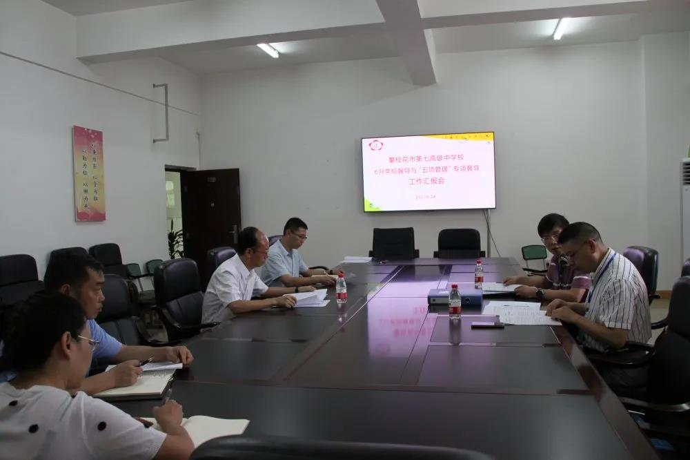 2021年6月24日下午,市人民政府教育督导委员会市级责任区督学张宣贵、廖裕到我校花城校区开展了6月常规督导与“五项管理”专项督导。学校党委书记、校长杨鸿率相关科室同志陪同督导检查。