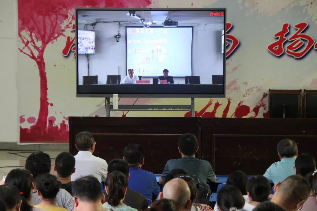 2021年6月25日下午,市政协教科卫体委主任、市七中原校长刘自力同志莅临市七中西城校区,为全校教职工作了题为“新阶段攀枝花发展战略和攀枝花教育发展思考”的党史学习教育专题党课和形势政策报告。花城校区教职工通过远程会议系统参加了报告会,学校党委书记、校长杨鸿同志主持会议。