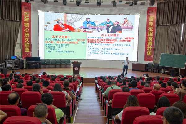 正高级教师、省特级教师、省教书育人名师、省骨干教师韩先才在“教师的表达”主题讲座中指出“学高为师,身正为范”,广大教师应当遵循两个规矩:礼,做人的规矩;仪,做事的规矩。韩老师从好老师的标准、教师的体态、教师的表情、教师的语言几个方面阐释了如何成为一名优秀的教师。讲座中,巧妙的沟通互动环节及韩老师幽默风趣的语言赢得了老师们的阵阵掌声。
