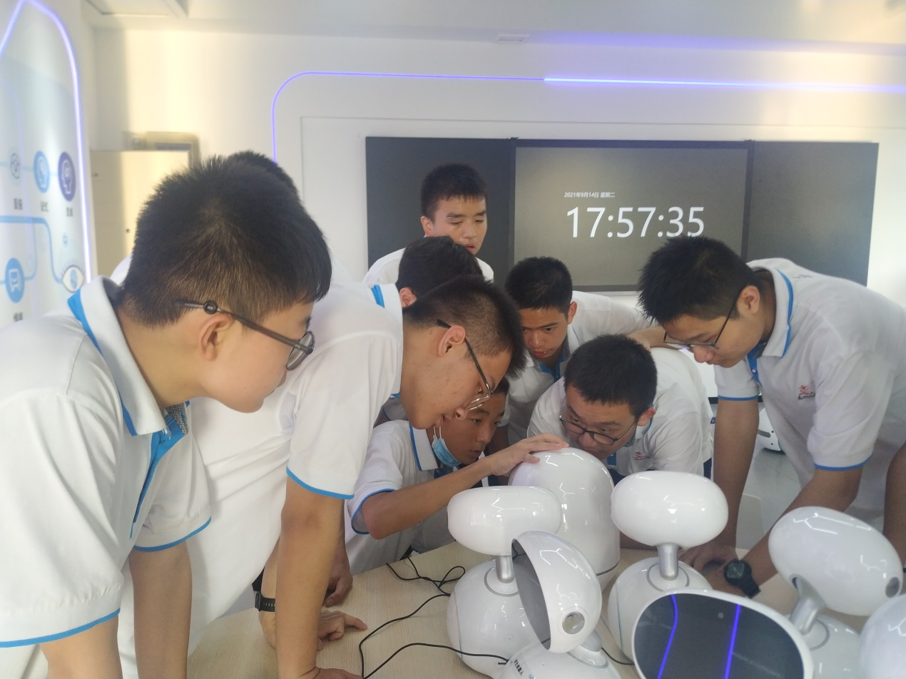 活动期间,我校还组织了高一年级同学参观我校创客实验室、人工智能实验室,形形色色、各式各样的机器人成为吸引学生们的重点,这些机器人有的圆头圆脑,不但会说话还会唱歌跳舞;有的方方正正,能跟着地面黑线前行,还能自动绕过障碍物……同学们按捺不住自己的好奇心,纷纷上前去和它们互动。