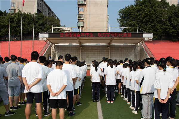 教务科科长吴江利用集会时间,向全校师生进行了专题宣讲,并向全校师生发出倡议:说好普通话,写好规范字,用一言一语、一撇一捺讲好中国故事,传播中华文明。