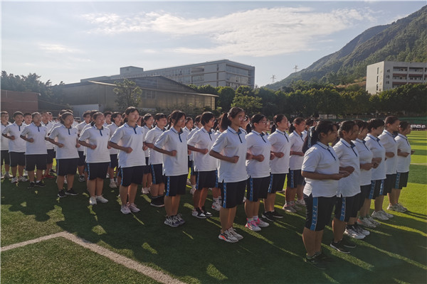 9月27日,军训第二天。晨起的号角唤醒朝霞,嘹亮的口号回荡操场,经过昨晚的训练,2021级的同学们已经初步掌握了跑操的要领,在教官的带领下开启了新一天的军训。