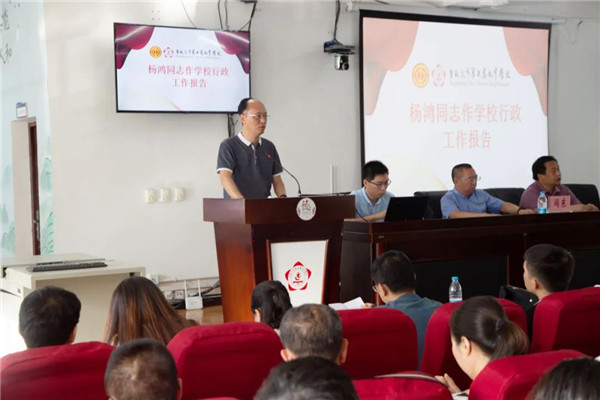 学校党委书记、校长杨鸿同志代表学校作了题为《创新驱动人才培养模式,为攀枝花市打造区域优质教育中心起好引领示范作用》的行政工作报告。杨鸿指出,近年来,学校的软硬件办学条件不断得到改善,学校发展面貌焕然一新;杨鸿希望,在今后的工作中,全体教师能够以主人翁姿态积极关心学校的发展,服务学生,牢记我校“成就学生的同时成就自己”的师训;杨鸿强调,在2021-2022学年中,各科室、教学部按照学校“十四五”规划推进工作,创新人才培养模式,加快构建学校新发展格局,为打造区域优质教育中心贡献七中力量。