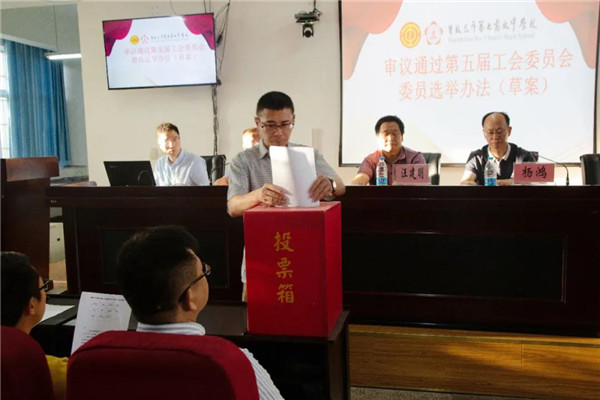 会上,阎东宣读了市教育工会关于同意学校工会换届选举的批复文件,大会审议并通过了关于监票员、计票员的提名和换届选举办法。在有序投票选举后,大会产生了新一届的工会委员会委员。选举结束后,阎东同志宣读了新一届工会委员会委员名单,并提请大会审议本次教代会的《大会决议》。