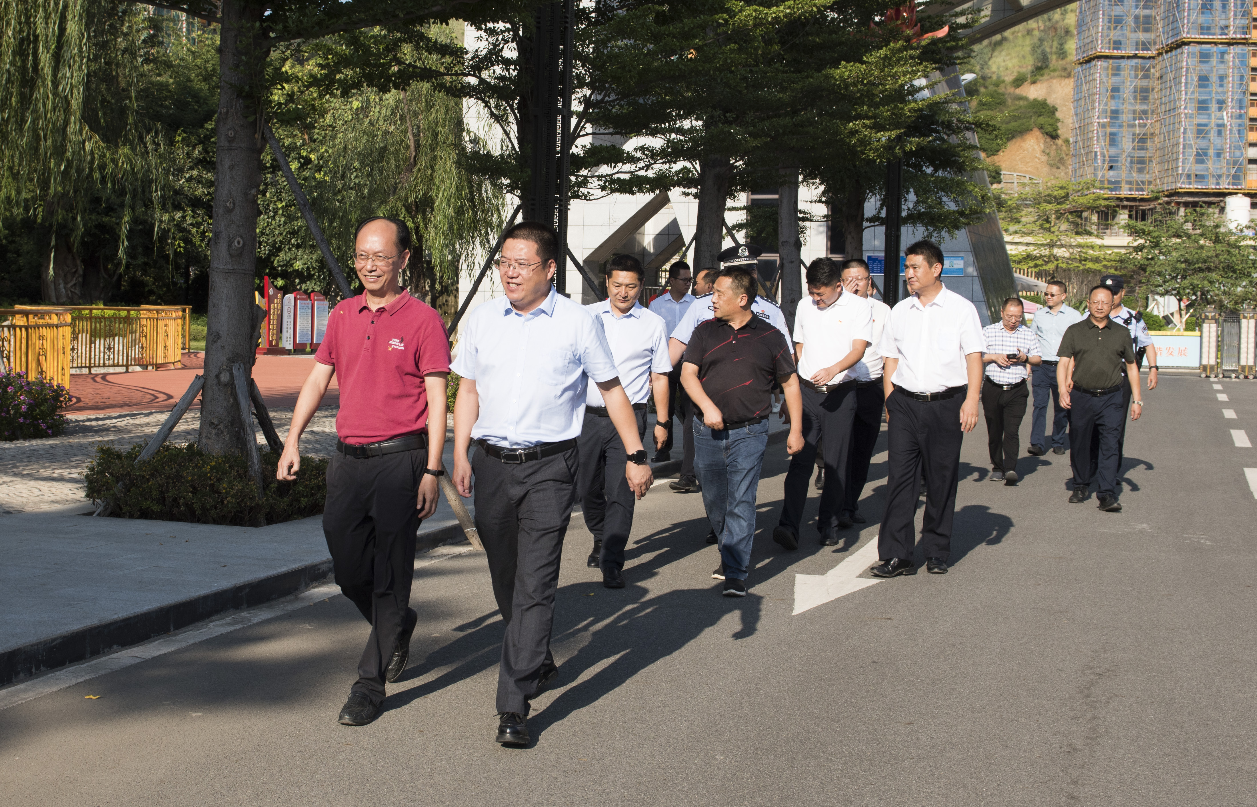 苟军一行实地察看了花城校区校园周边建设情况,对校园周边的在建工程以及可能存在的安全隐患进行了排查;深入学校察看了校园建设、参观了校园,了解了学校办学及法治、安全教育等方面的现状,并与学校领导班子开展了亲切的交流座谈。