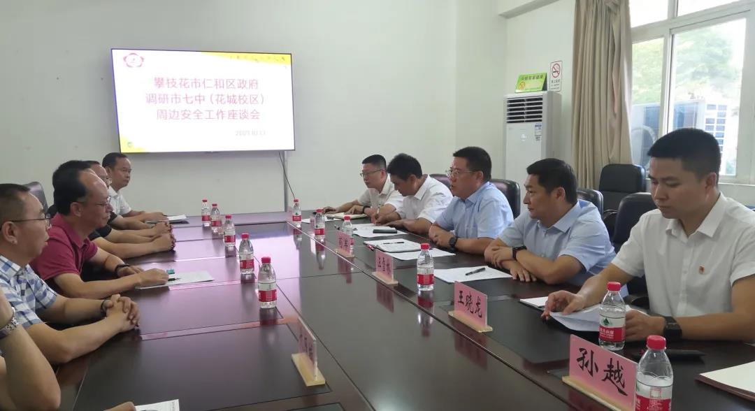 10月13日下午,仁和区区委副书记、区长苟军,区委副书记汪雪林,区委常委、区委政法委书记张洪强,区委常委、区委组织部部长王晓龙,区政府副区长孙越一行莅临我校花城校区调研工作,仁和区委政法委、区公安分局、区教体局、大河中路街道办、大河中路派出所和区教育考试中心的负责人陪同调研,市七中党委书记、校长杨鸿,党委副书记、纪委书记汪建明,副校长谢子明、阎东、代座城和相关科室负责人参加调研。
