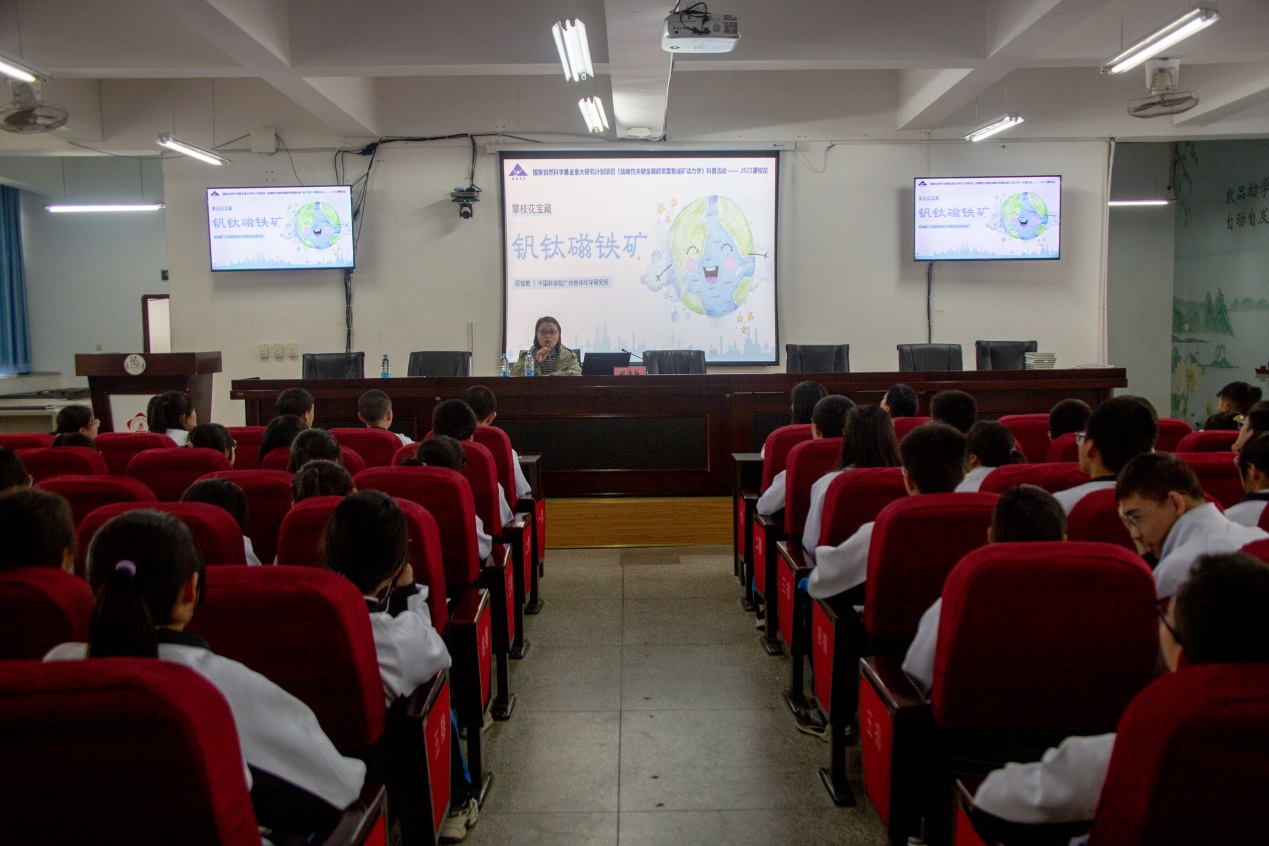程佳敏博士向同学们分享了家门口的宝藏——攀枝花钒钛磁铁矿,她详细讲述了攀枝花的矿山分布及形成原因,重点讲述了钒钛的提炼及应用。这让攀枝花土生土长的同学们倍感亲切,不少矿山的名字早已耳熟能详,但通过今天的讲座才知道原来攀枝花的矿藏如此有名。