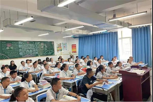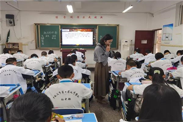 英语组赖芹老师在游戏中让学生进行复习,巩固单词和词组,口语流利,课堂指令清晰,课堂气氛活跃,生动有趣。物理组的李肖潇老师围绕八年级上册物理《汽化和液化》相关内容展开教学,从生活情境导入,在互动中完成了知识的教学。数学组梅忠敏老师的《有理数的乘方》一课,以“阿凡提和巴衣老爷”的故事贯穿课堂,生动有趣地详解了知识点,使理性的数学与生活密切相连,引发了学生的思考。语文组谢佳蓄老师执教的是《秋天的怀恋》,引导学生在深情的“朗读”中体悟母爱,在音乐的烘托下产生共情,充分调动了学生的参与热情。政治老师周贵琴在《走进教师》一课中,以明确的教学目标作引领,讲练结合,着力培养学生对教师职业价值的认同,浸润着尊师重教的情感教育。