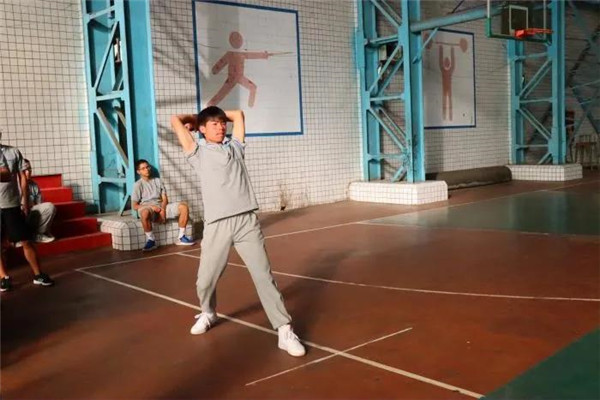 “请高三男子跳远的同学到检录处集合。”
