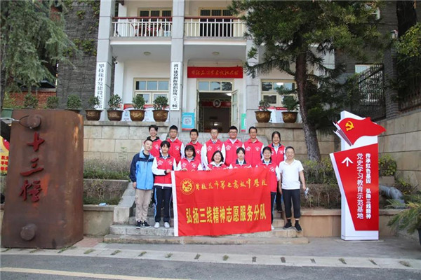 参观结束,在历史遗迹的见证下,高2024届13班的晏梓翔作为团员代表带领同学们重温了入团誓词,表达了为实现民族复兴的伟大中国梦而努力奋斗的坚定决心。12班代云做了题为“传承三线精神,弘扬时代新风”的团旗下演讲,号召同学们做三线精神的传承者,在学习和生活中,践行“艰苦创业、无私奉献、团结协作、勇于创新”的三线精神。