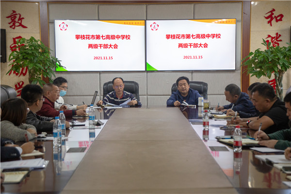 为推进学校常规工作的落实,11月15日上午,市七中在西城校区博通楼四楼会议室召开了全校干部大会,学校领导班子成员及全体干部参加。会议由党委书记、校长杨鸿主持。
