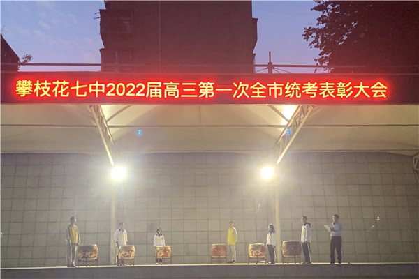 11月21日晚,市七中第一教学部集结2022届全体学生,在西城校区运动场隆重举行了2022届高三第一次全市统考表彰大会暨高三第二次班级PK挑战赛。大会由年级主任牟厚均主持,第一教学部领导、班主任以及全体学生参加。